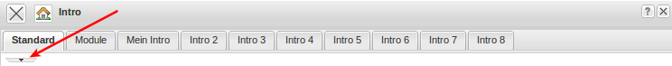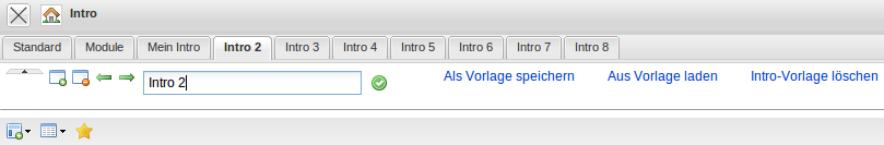 Anschließend können hier Einstellungen getätigt werden. Oberhalb der ausgewählten Tabelle lassen sich Name und Position des Reiters festlegen. Ein Klick auf den grünen Haken bestätigt die Einstellungen. Durch “Zuklappen” der Konfigurationsansicht wird in die geänderte Ansicht gewechselt. Im folgenden Beispiel wird der Reiter “Intro 2” …