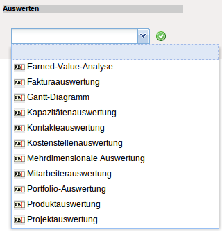 Mit Hilfe der Funktionalität “Auswerten” können verschiedene Auswertungen über den Datenbestand erzeugt werden. Die Auswahl der Auswertungen unterliegen dem Berechtigungssystem.