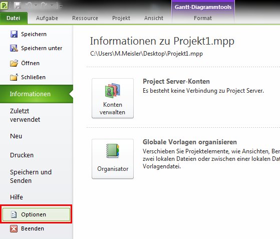 Zunächst wird das gewünschte Projekt in MS Project geöffnet.