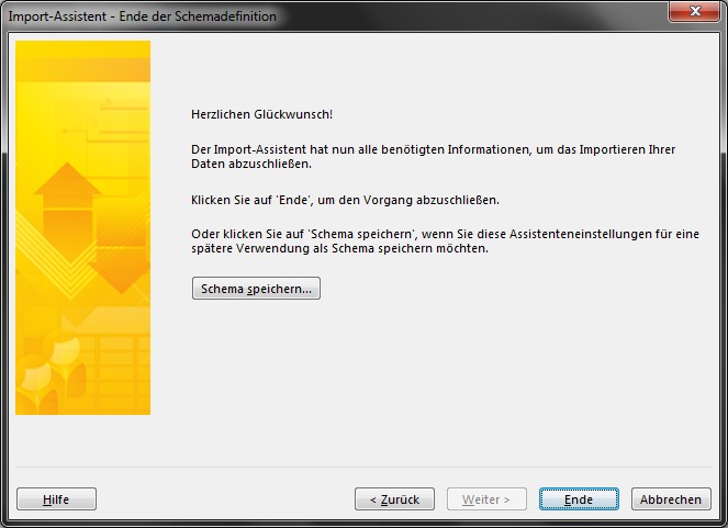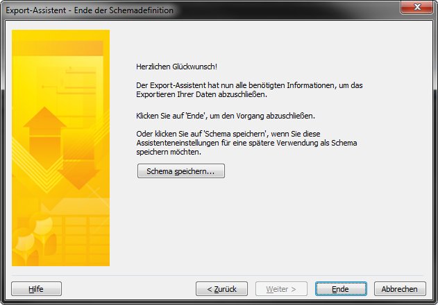 Die mitgelieferten Schemen sorgen dafür, dass genau diese Felder importiert und exportiert werden. Es ist aber auch möglich ein Schema selbst zu erstellen, wenn man sicherstellt, dass die hier genannten Felder mit korrekten Feldnamen in der Datei enthalten sind.
