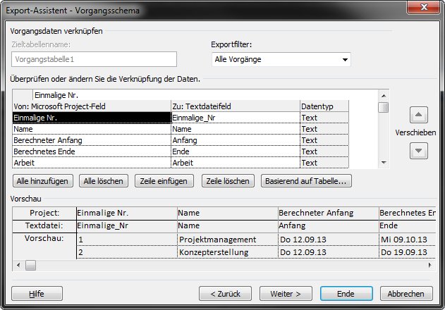 3 Durchführen eines Exports von Projectile nach MS Project