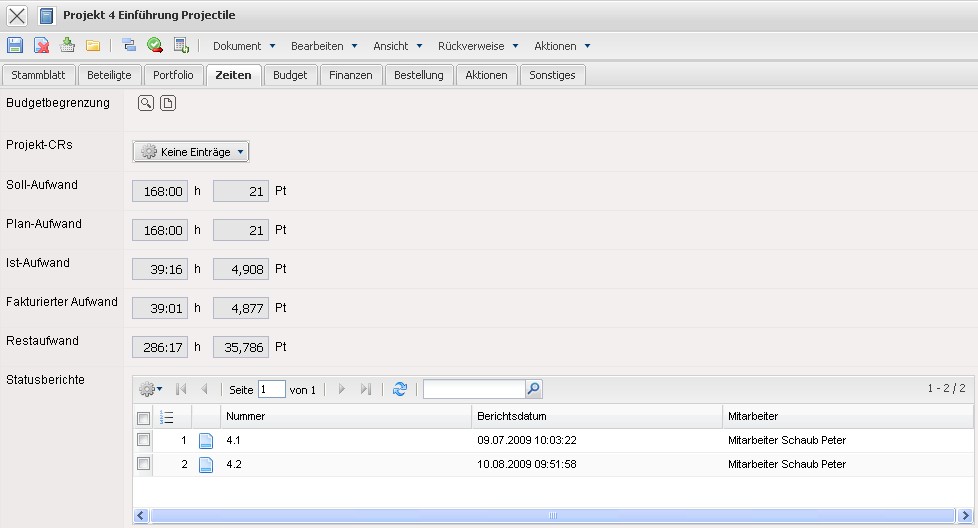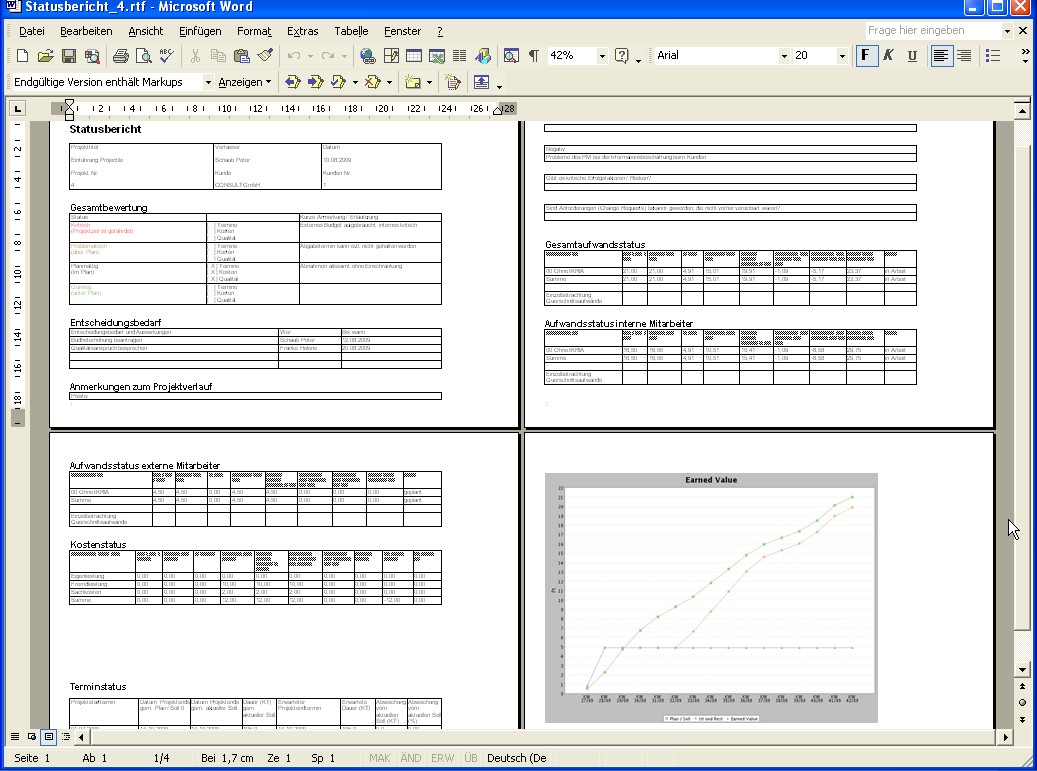 - der Earned-Value Analyse des Projekts