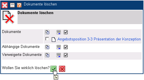 Nach Bestätigung der Sicherheitsabfrage wird das Angebot aus dem Datenbestand entfernt.