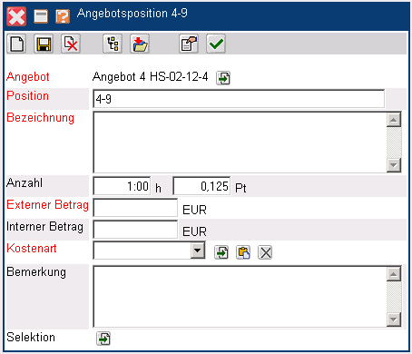 Angebotspositionen können auch manuell angelegt werden. Mit Hilfe der Funktionalität “Neues Dokument” im Element Angebotspositionen …