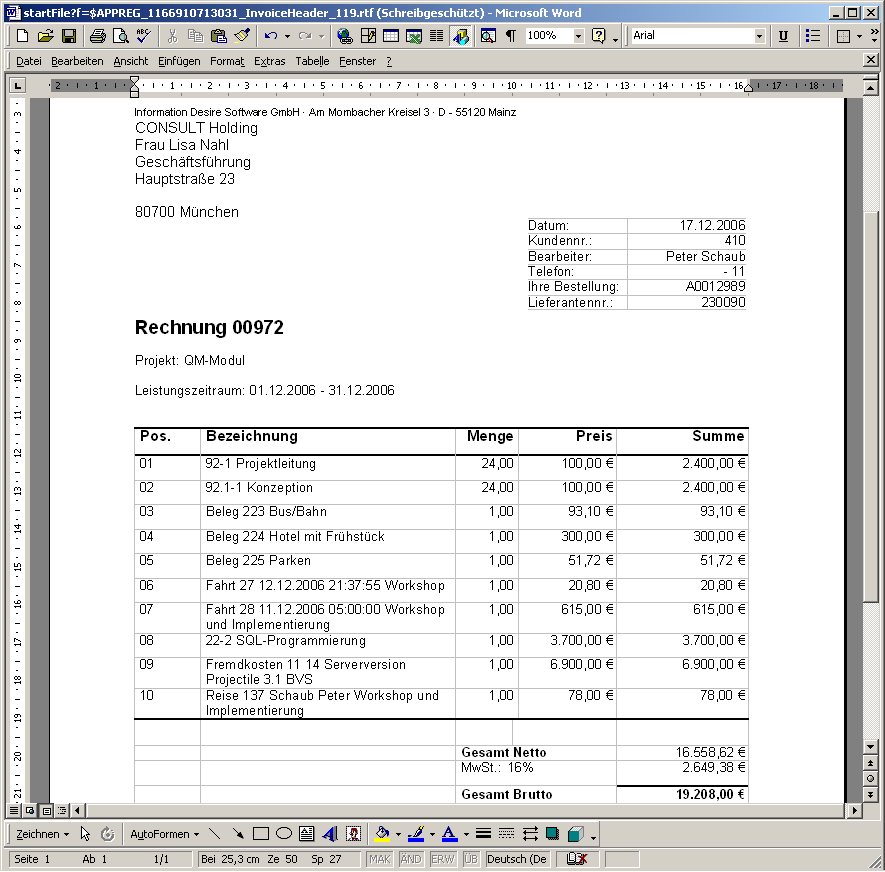 Anschließend öffnet sich der konfigurierte Browser oder die Textverarbeitung mit der Rechnung.