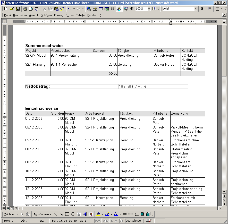 Der Nachweis zur Rechnung basiert auf den fakturierbaren Leistungen und wird in Form eines Reports …