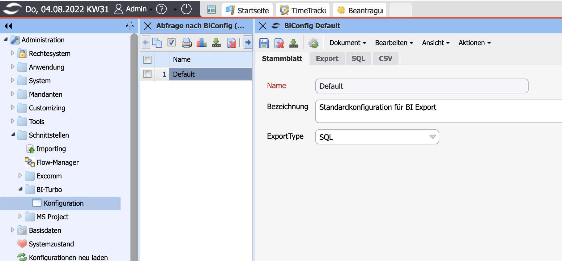 Nach dem Update von Projectile auf eine Version mit integriertem BI-Modul kann man den BI-Export konfigurieren: