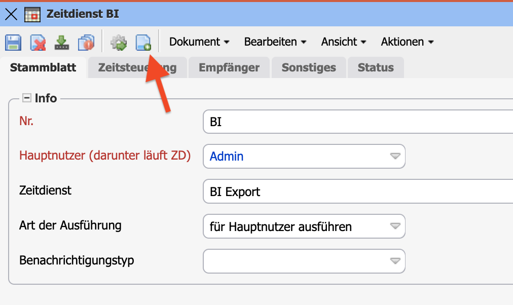 Ein Zeitdienst sollte zur regelmäßigen Ausführung des BI-Exports angelegt werden: