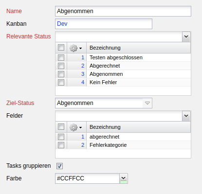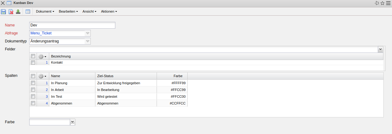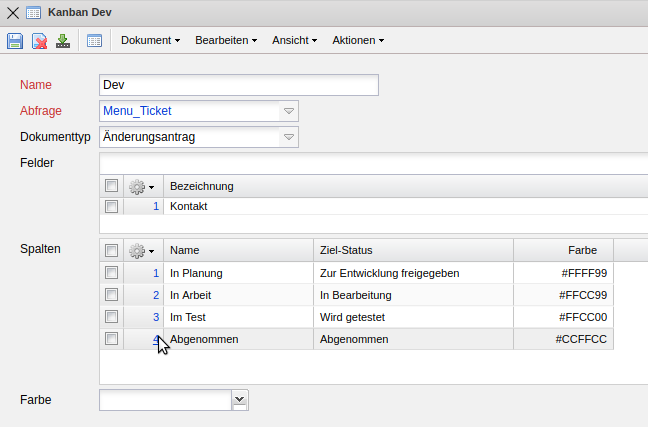 An dieser Stelle können Sie die Spalten des Kanban und den gewünschten Zielstatus festlegen.